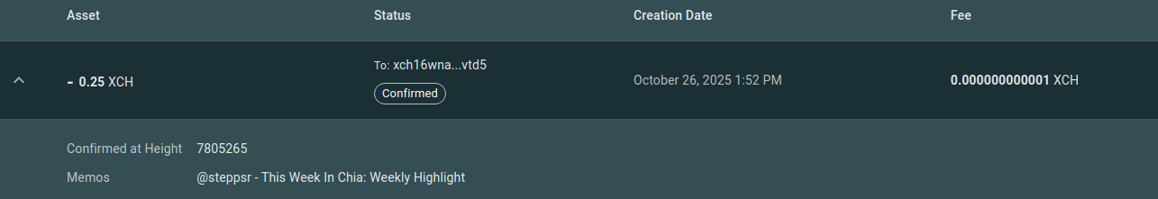 🌎 🌱 📢 🧵 🐯 ▶️ 🚀 📆 ⭐ 📰 🏡 Community Site • No affiliation with Chia Network, Inc.Week of Nov 2, 2025 - Nov 8, 2025