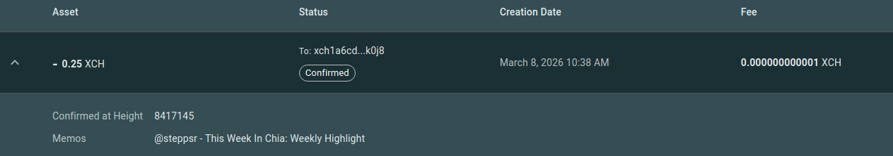 Weekly Highlight: Spacescan! A well deserving core community member providing a valuable service to everyone with a blockchain explorer, charts, CAT & NFT explorer, tools, API, and recently Offer files. Join me in showing some love if you want: xch1a6cd558gqsz2hch5pt0l8mx7zhavf32q5lyde09zjtqcmkelr9ns59k0j8 or see their Support page. 💚