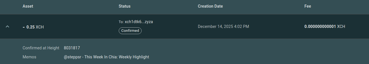 🌎 🌱 📢 🧵 🐯 ▶️ 🚀 📆 ⭐ 📰 🏡 ♻️ Community Site • No affiliation with Chia Network, Inc.Week of Dec 14, 2025 - Dec 20, 2025