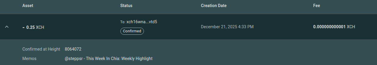 🌎 🌱 📢 🧵 🐯 ▶️ 🚀 📆 ⭐ 📰 🏡 ♻️ Community Site • No affiliation with Chia Network, Inc.Week of Dec 21, 2025 - Dec 27, 2025